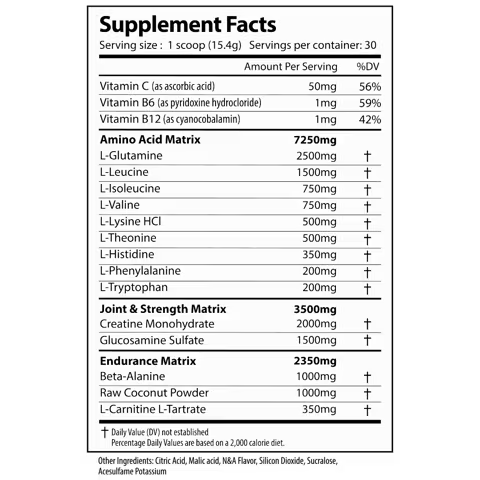 * L-Glutamine: Aids in muscle recovery and immune support.