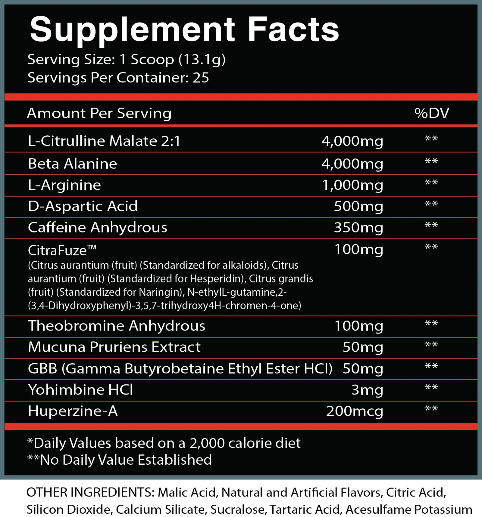 If you’re new to the game, start with ½ scoop mixed with 6-12 oz of water and drink it 30 minutes before you train. If you’re a seasoned warrior, go for 1 full scoop with water and drink it 30 minutes before you train. EVEN IF YOU’RE A FLAMING GOD, DO NOT TAKE MORE THAN 1 SCOOP IN A DAY.